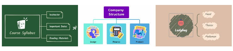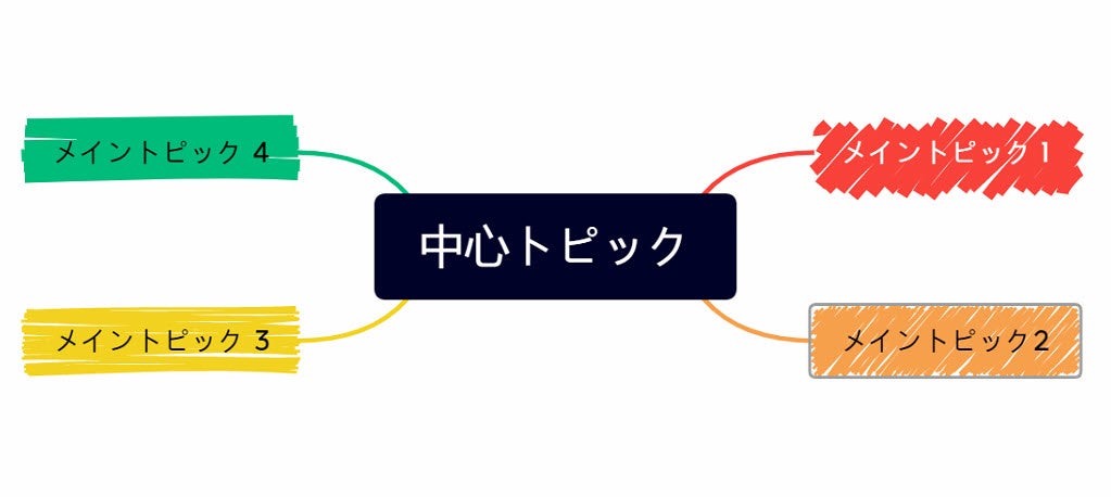 新しく追加された手書き風デザインをメイントピックや、サブトピックに使用し、カラフルに色づければマインドマップに個性を出せます。