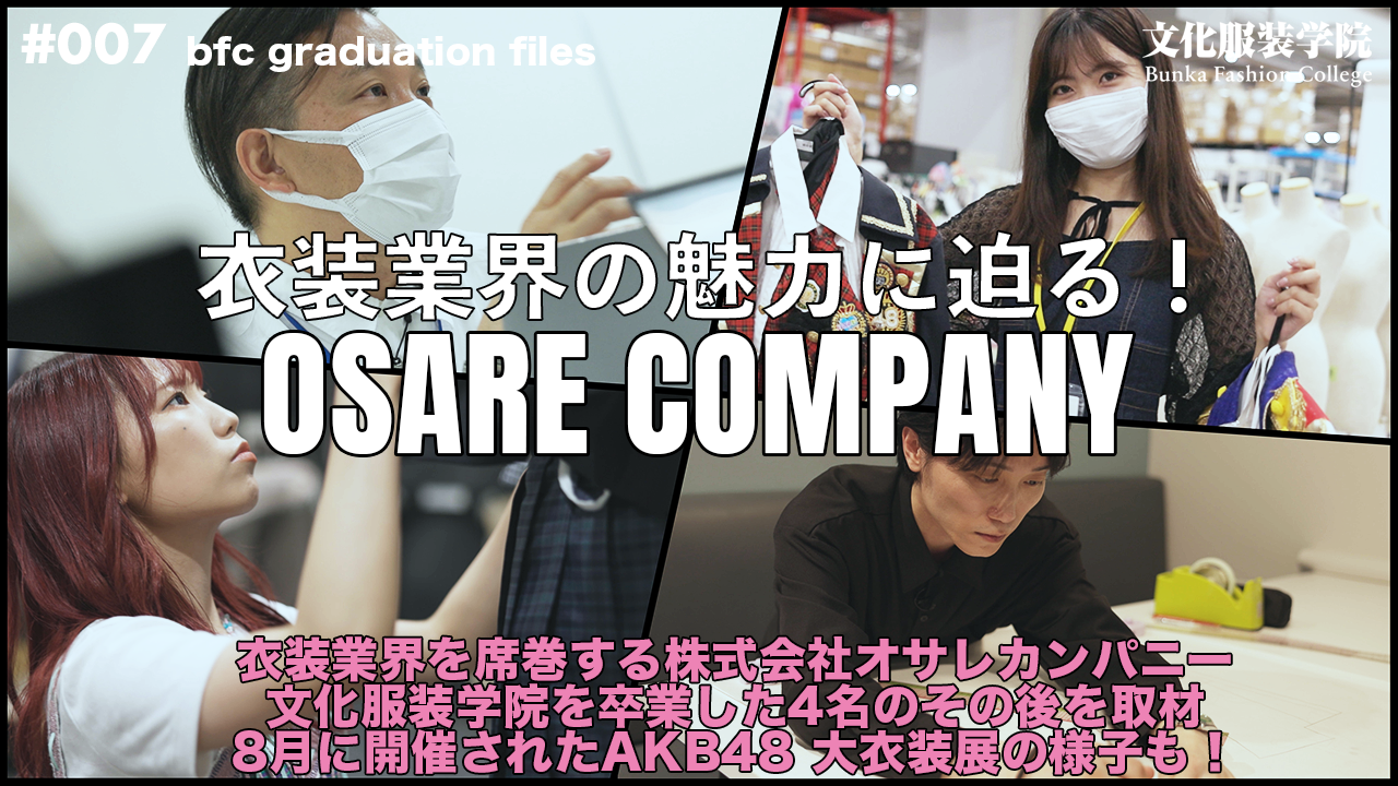 アイドル衣装から高校の制服まで衣装業界を席巻するオサレカンパニー。文化服装学院を卒業後、同社でディレクター、スタイリスト、プレス(広報)、パタンナーとして活躍する4名に密着した取材動画を特別公開!