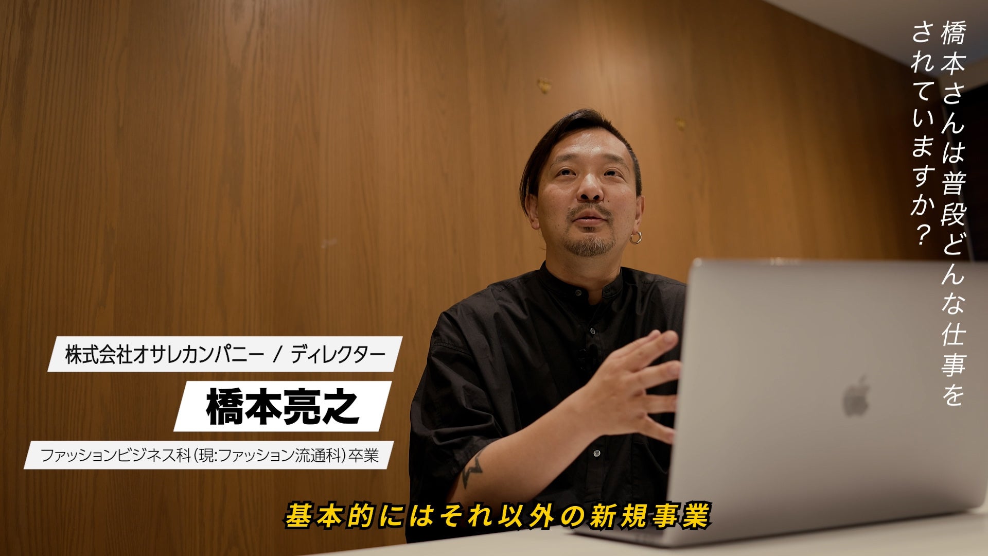 ディレクター、スタイリスト、プレス(広報)、パタンナーとして活躍する卒業⽣に⼊社のきっかけや仕事のやりがいなどを取材。2023年8⽉に開催された『AKB48 ⼤⾐装展〜オサレカンパニーの世界〜 』の舞台裏の密着やクリエイティブディレクター茅野しのぶ、AKB48 大衣装展のPR大使を務めたAKB48の⼭根涼⽻も特別出演し、⾐装業界の魅⼒に迫る!