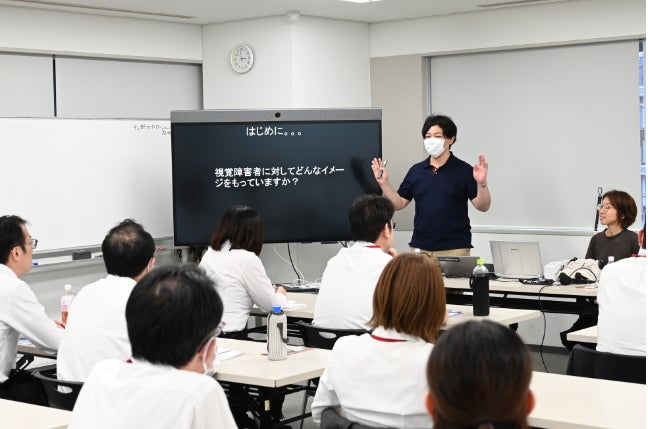 さらに、視覚障がいのある方が安心できる購入環境を提供するため、ビックカメラの店舗スタッフ向けに接客研修を実施しました。障害者差別解消法の改正により、2024年4月1日から事業者はサービス提供などさまざまな場面で障がいのある方への合理的配慮の提供を行うことが義務化された一方、店舗での購入にはハードルがあるといった視覚障がいのある利用者からの声が挙げられます。