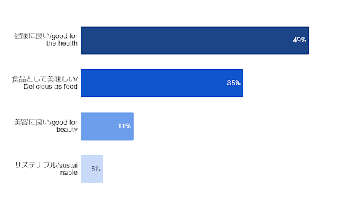 しかし、今回の調査では9割と圧倒的な支持を得ていることが分かりました。その理由として「健康効果」がトップになりました。近年、肉の代替食として「海藻ベーコン」がブームになるなどヘルシー志向の拡大と共に「海藻」に注目が集まっています。