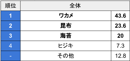 ・よく食べる海藻は「ワカメ」が最多で約4割。「昆布」「海苔」が続く