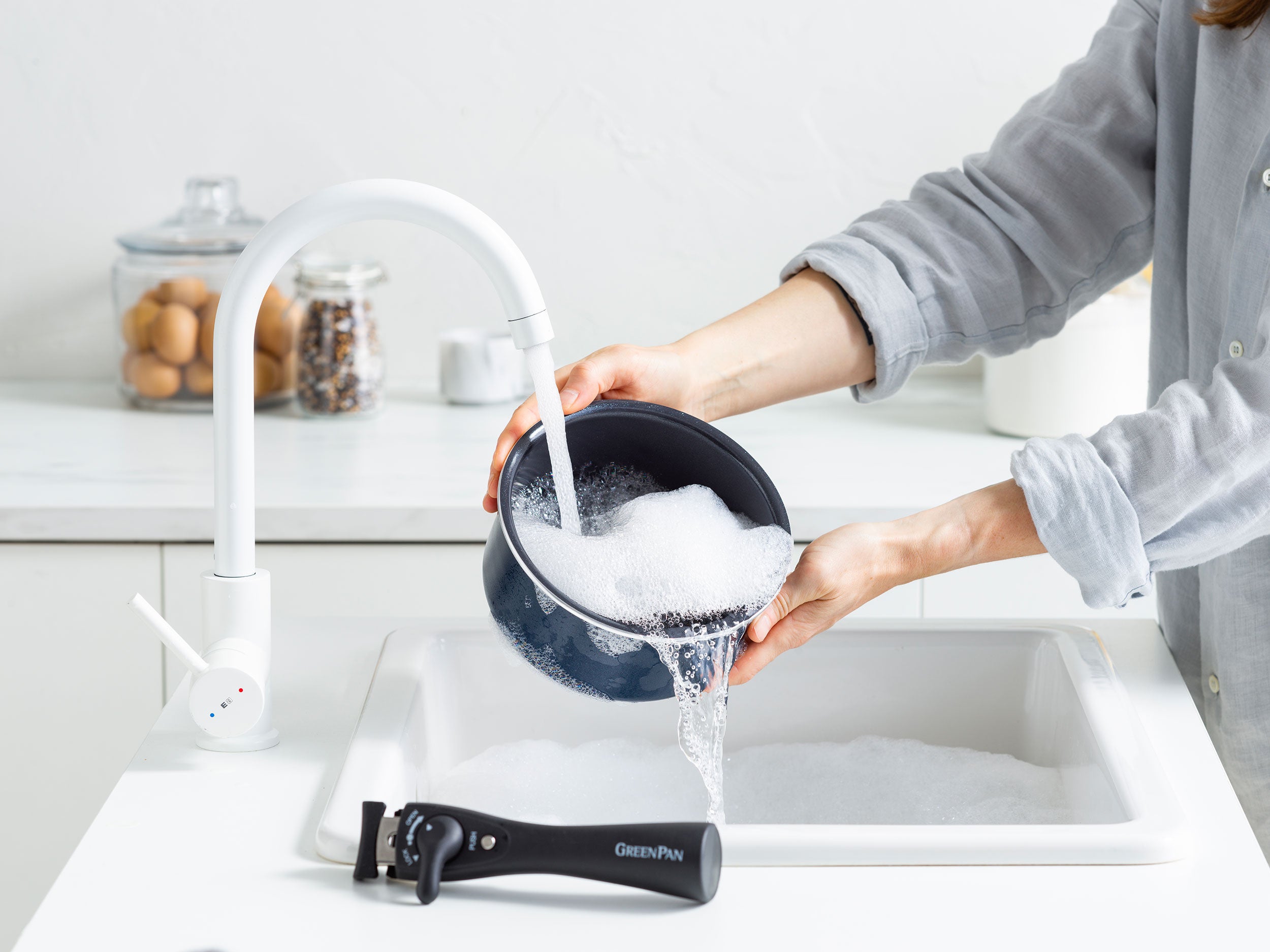 調理中のこびりつきにくさはもちろん、調理後のお手入れも簡単なのが特長。