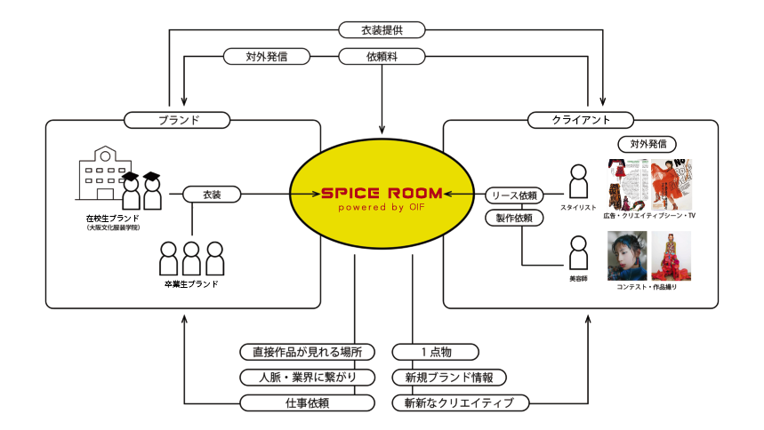 OIFの卒業生や在校生によるブランドを集積し、スタイリストへのリースサービスを主に、ブランドのPRを行うことを目的とした「SPICE ROOM powered by OIF」のアンテナショップをオープン。2023年4月からの本格稼働に先駆け披露。