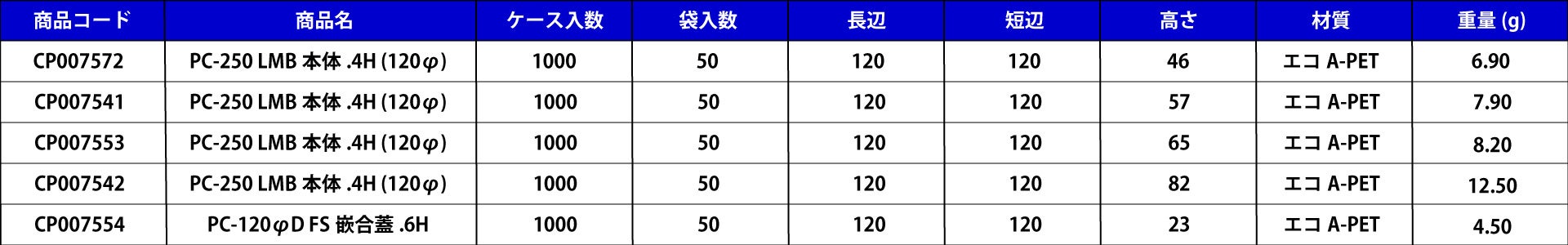 ・120Φ口径サイズで4アイテムの新ラインナップにより量目に合わせた商品化が可能。