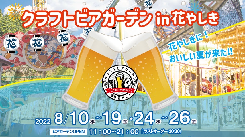 株式会社花やしき(東京都台東区、代表取締役社長 西川豊史)が運営する日本最古の遊園地「浅草花やしき」は2022年8月10日(水)~19日(金)、24日(水)~26日(金)の期間(計13日間)に「クラフトビアガーデン in 花やしき」を開催いたします。