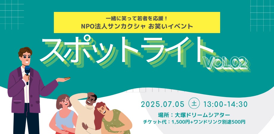 経済的に困窮状況にある若者の支援に取り組む特定非営利活動法人サンカクシャ(本部:東京都、代表理事:荒井佑介)は、新たな取り組みとして、チャリティお笑いイベント「スポットライト」を開催します。