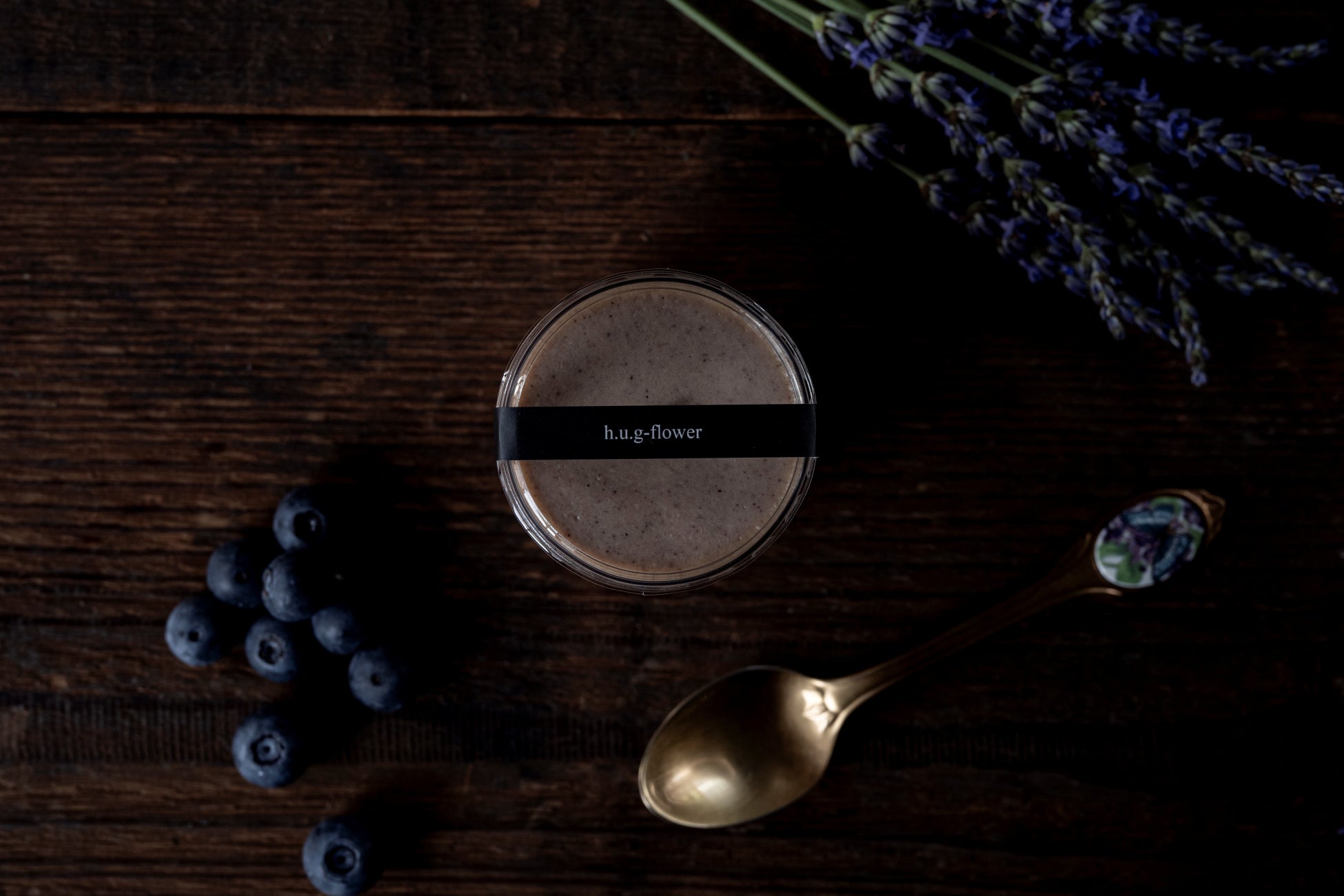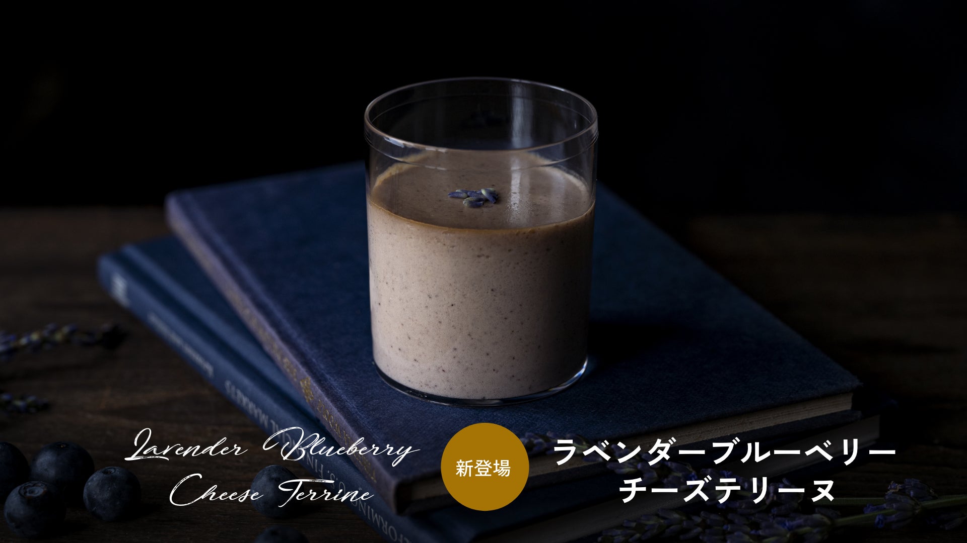 h.u.g-flowerでは、ラベンダーの美しい花が最も鮮やかに咲く季節を迎えるにあたり「ラベンダーブルーベリー チーズテリーヌ」を発売します。今が旬のラベンダーの華やかな香りとフルーティーなブルーベリーを合わせた夏の爽やかなカップスタイルのチーズテリーヌに仕上げました。本商品は、ラベンダーの花がピークを迎える初夏から夏にかけての期間限定でご提供します。