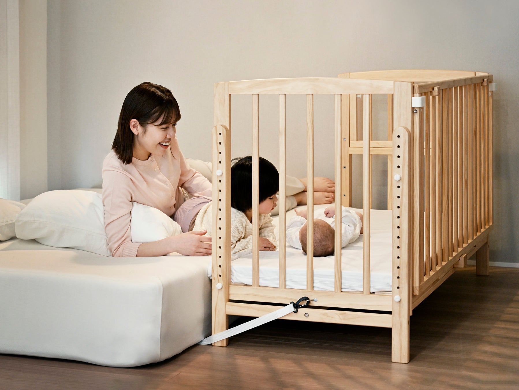 「そいねーる」は、赤ちゃんが寝る床板の高さ調節が細かくできることで、段差やすき間がなく、大人