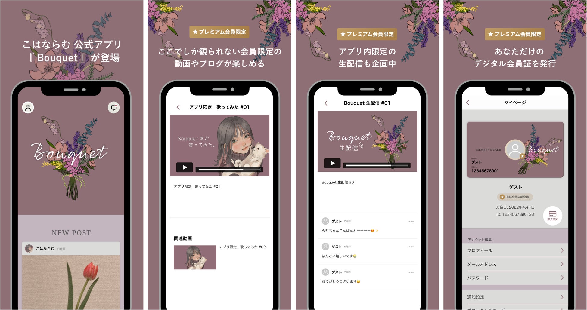 こはならむ公式アプリ「Bouquet」の会員になると、会員限定サービスをお楽しみいただけます。