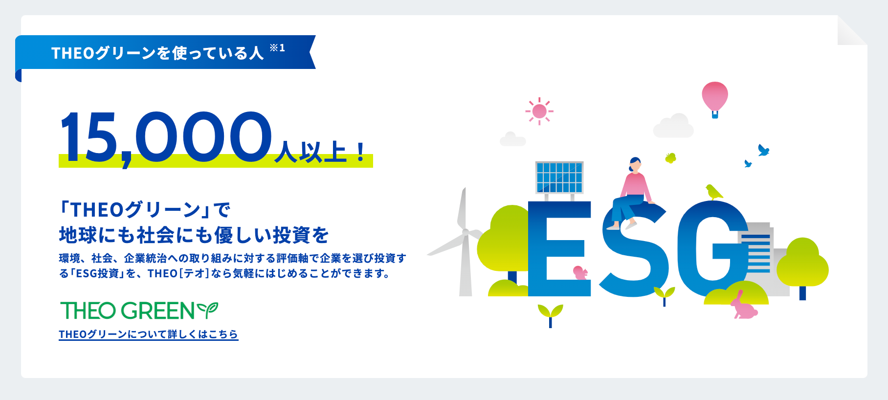 ・ESG投資ができる「THEOグリーン」利用者数は15,000人以上※1