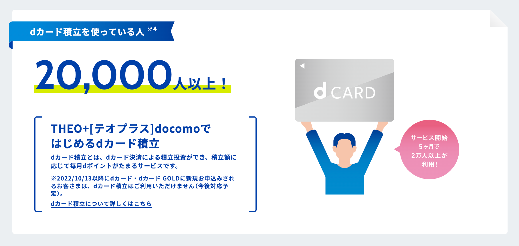 ・THEO+[テオプラス] docomoの機能「dカード積立」利用者は20,000人以上※4