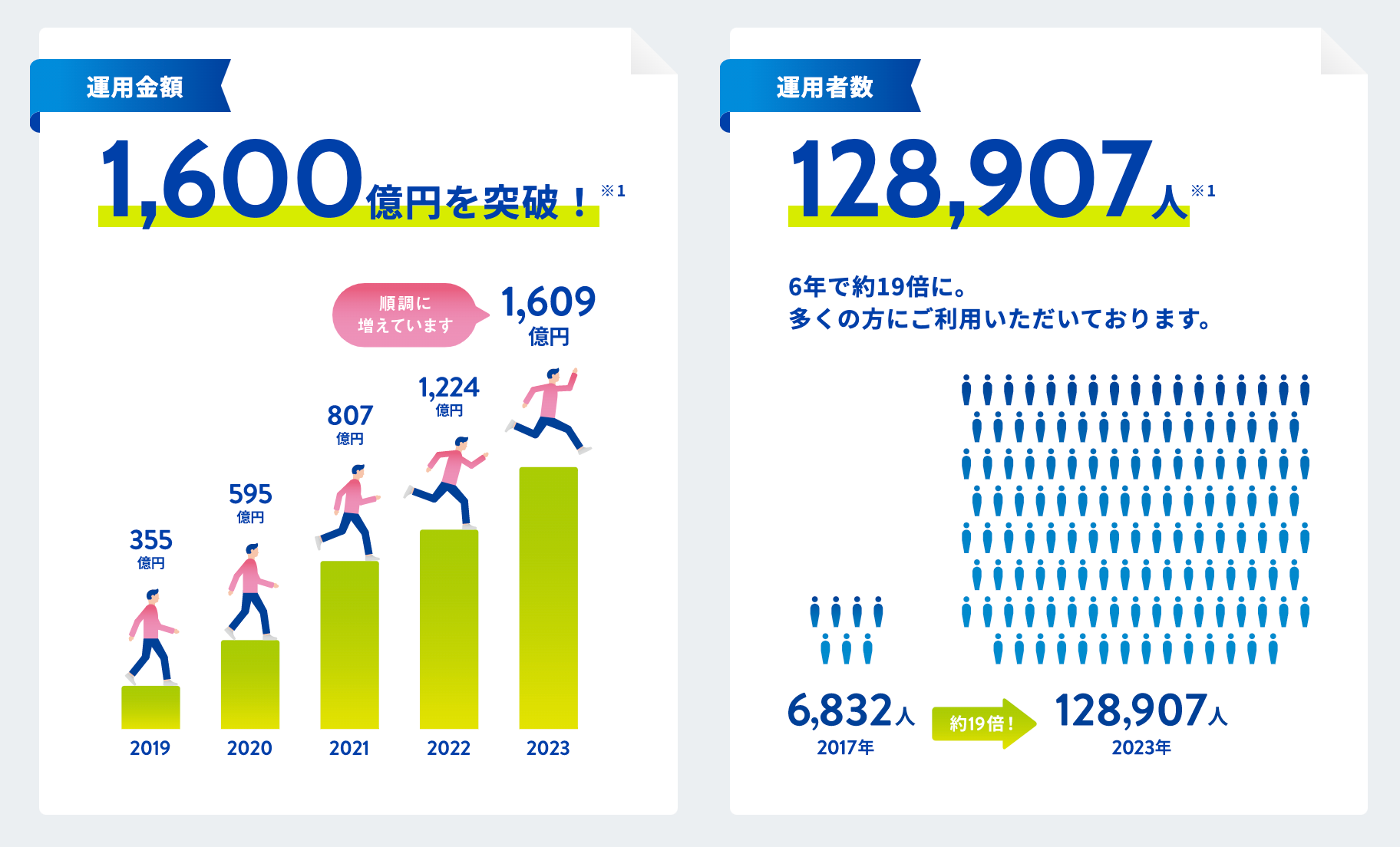 運用金額は1,600億円以上、 一人あたり平均運用額は124万円に成長