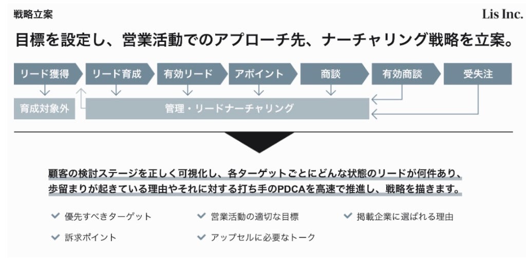 株式会社Lisは「猟奇的なワクワクを世界へ届ける」をビジョンに、IT・SaaS業界に特化し、「営業」という人に関わる業務全般の改善・効率化を図るため、営業支援や営業人材の採用支援、DX支援、リスキリング支援などを展開しています。