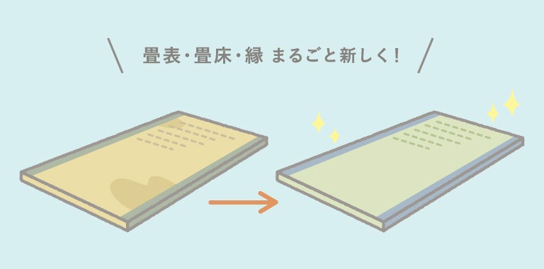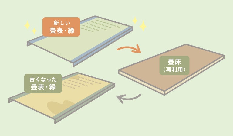 畳床(畳の中材)はそのまま、畳表(ござ)と縁を新しいものに取り替えます。