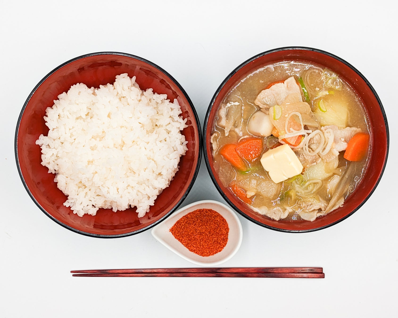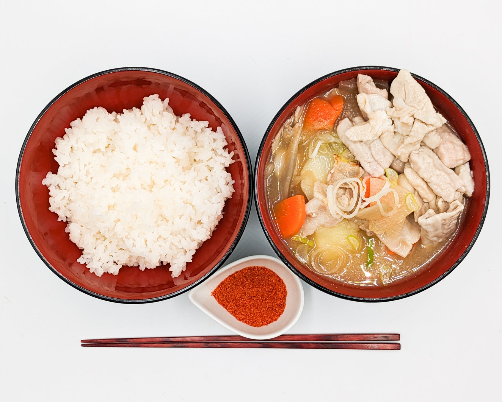 柔らかい豚肉、根菜、葉物などが煮込まれ、栄養満点で具材がたっぷりの豚汁ブランドです。