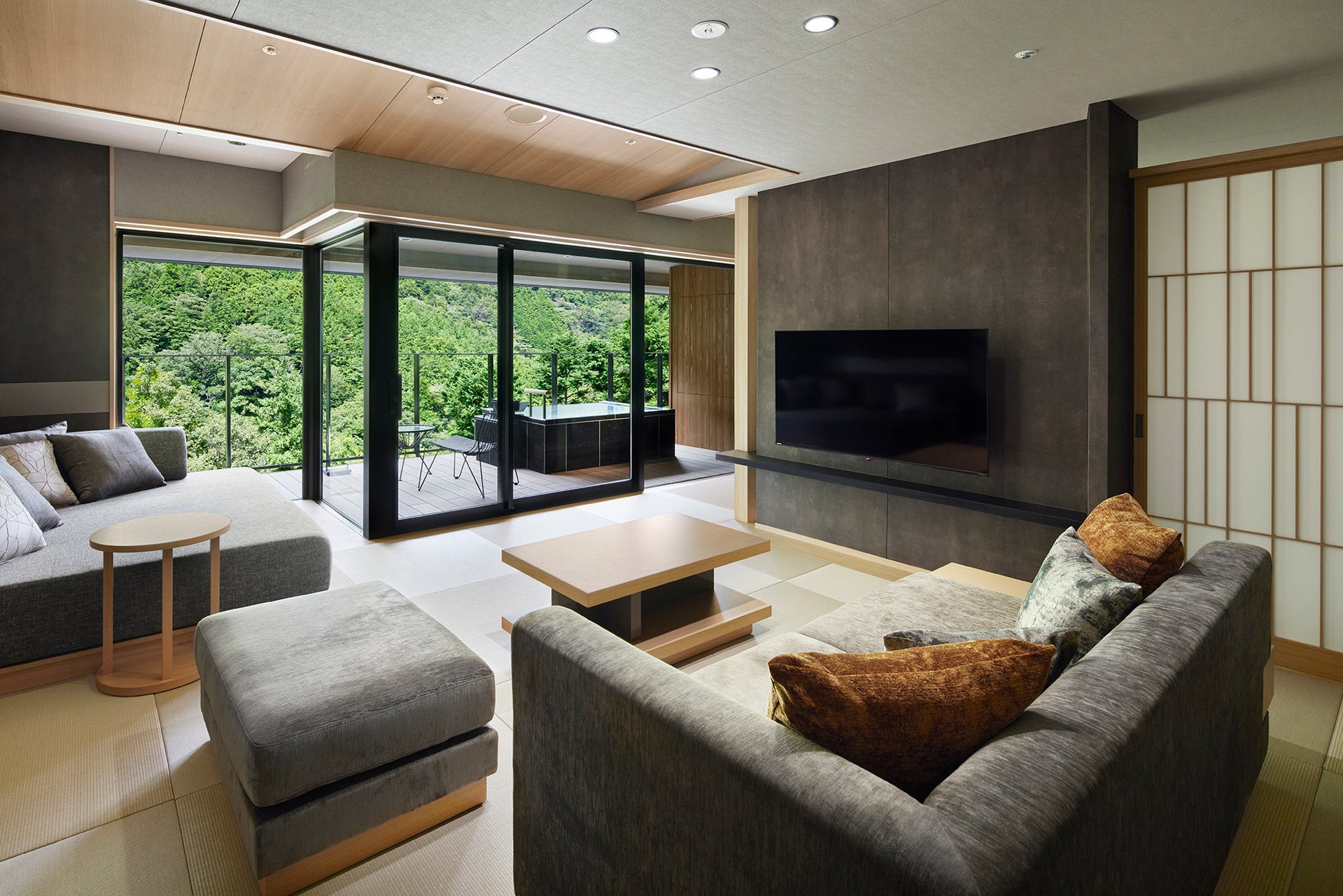 “はつはな”は、箱根湯本地区のなかでも静閑な奥湯本に位置するスモールラグジュアリーホテルです。眼前には壮大な湯坂山が広がり、眼下に須雲川が流れるロケーションは、居ながらにして豊かな自然が感じられ、滋味あふれる贅沢なひとときに心と五感が満たされます。