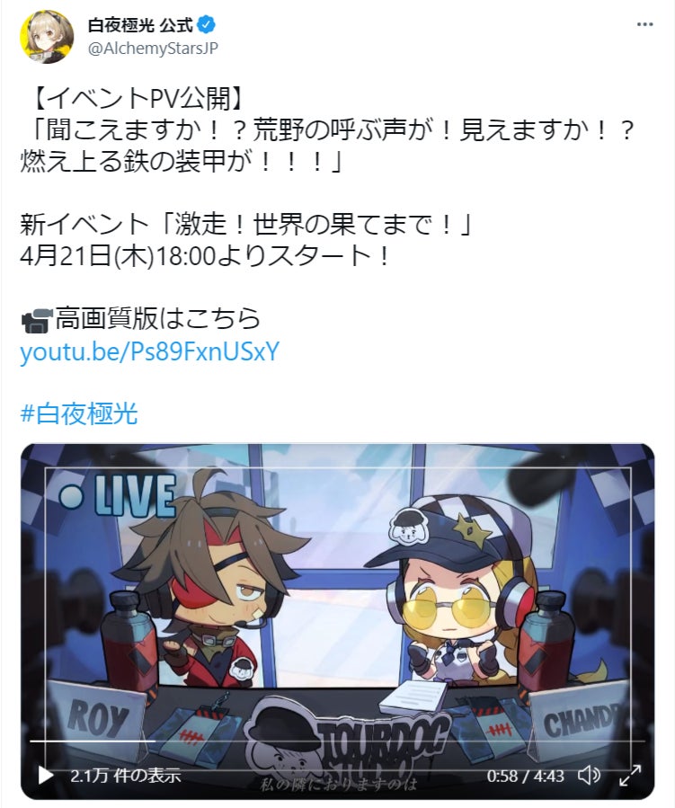 上記Tweet(https://twitter.com/AlchemyStarsJP/status/1516008646269980674)をRT
