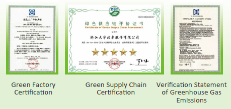 Dahuaは、より持続可能な工場を作るために、低炭素/非炭素プロセスを精力的に開発し、敷地内の緑地を改善しています。廃ガスと油煙は、90%以上の回収効率と吸収率を提供する精製装置によって濃縮および吸収されます。試験機関は定期的に現場検査を実施し、すべての指標が関連する国内基準を満たしていることを示す産業排気ガス検査報告書を発行しています。