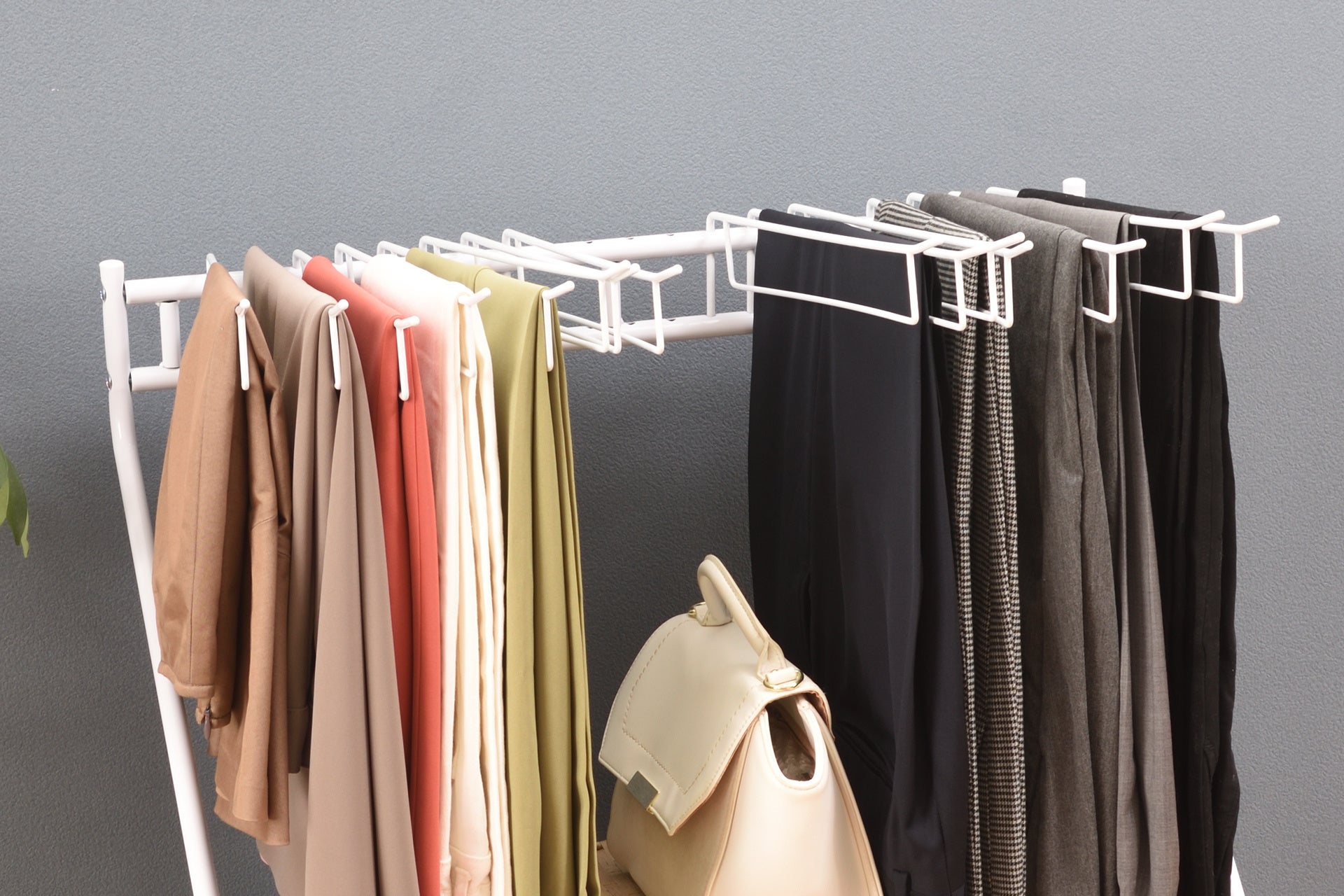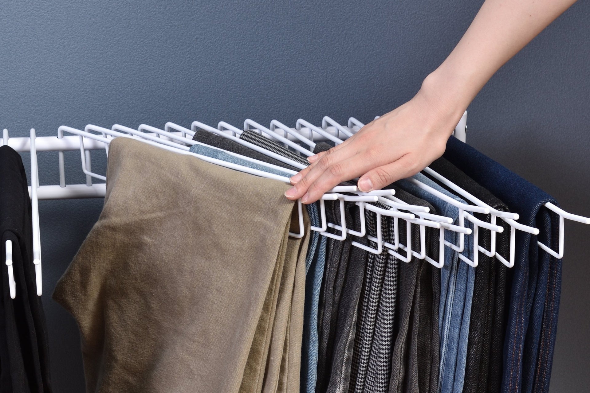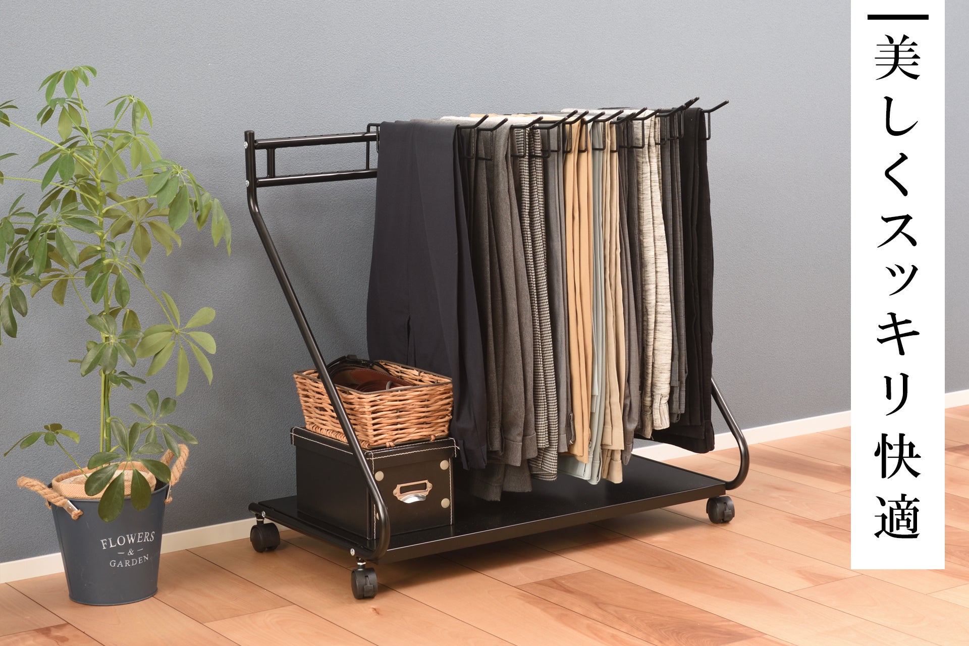 ハンガーが左右に開閉、取り出す時やしまう時に隣のスラックスが邪魔しません。