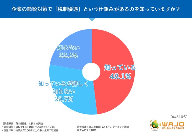 そこで今回、中小企業向けの自家消費型太陽光の税制優遇のサポート(https://wajo-holdings.jp/plants/lp-tax/) を行っている株式会社和上ホールディングスは、中小企業の経営者を対象に「税制優遇」に関する調査を実施しました。
