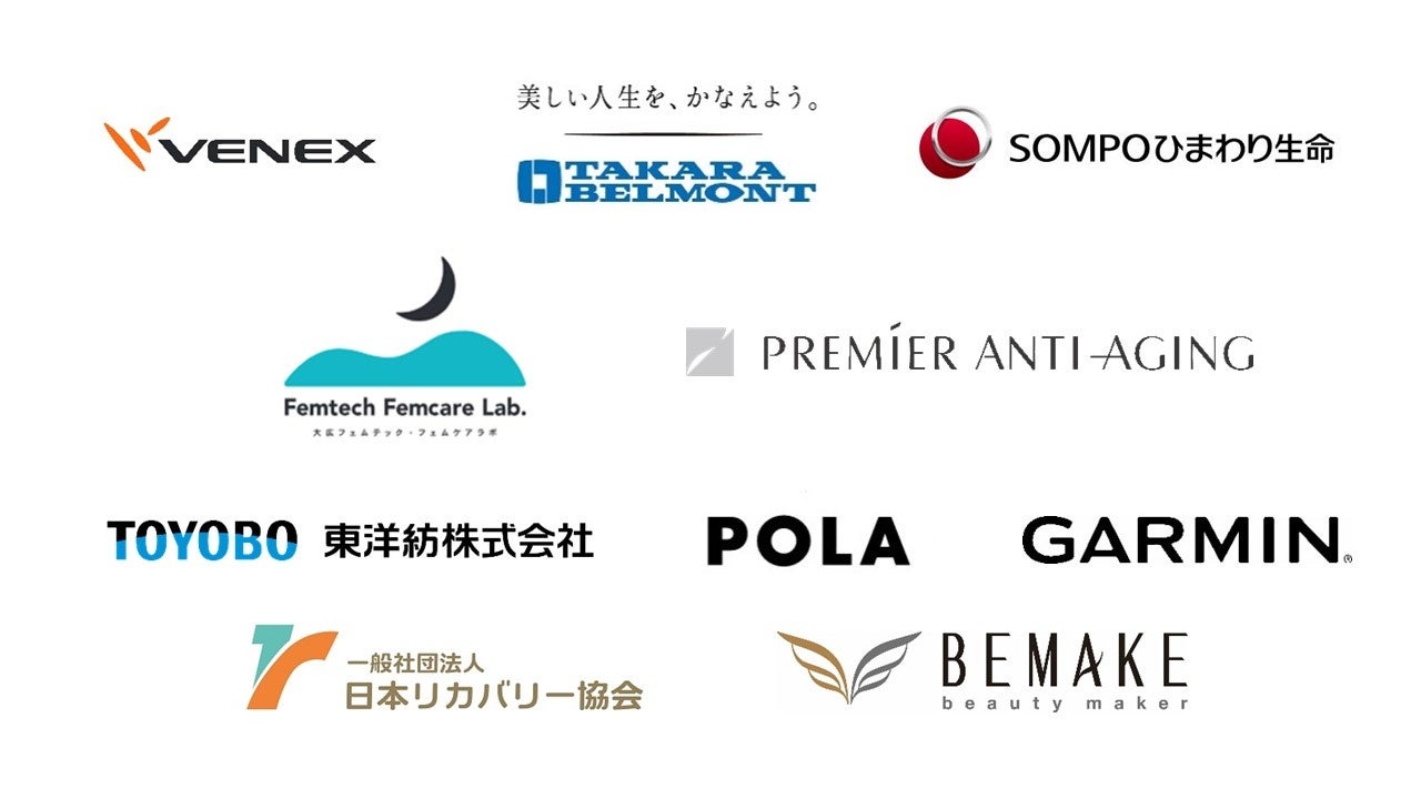 株式会社ベネクス、タカラベルモント株式会社、SOMPOひまわり生命保険株式会社、株式会社大広(大広フェムテック・フェムケアラボ)、プレミアアンチエイジング株式会社、東洋紡株式会社、株式会社ポーラ、ガーミンジャパン株式会社、一般社団法人日本リカバリー協会、株式会社ビ・メーク