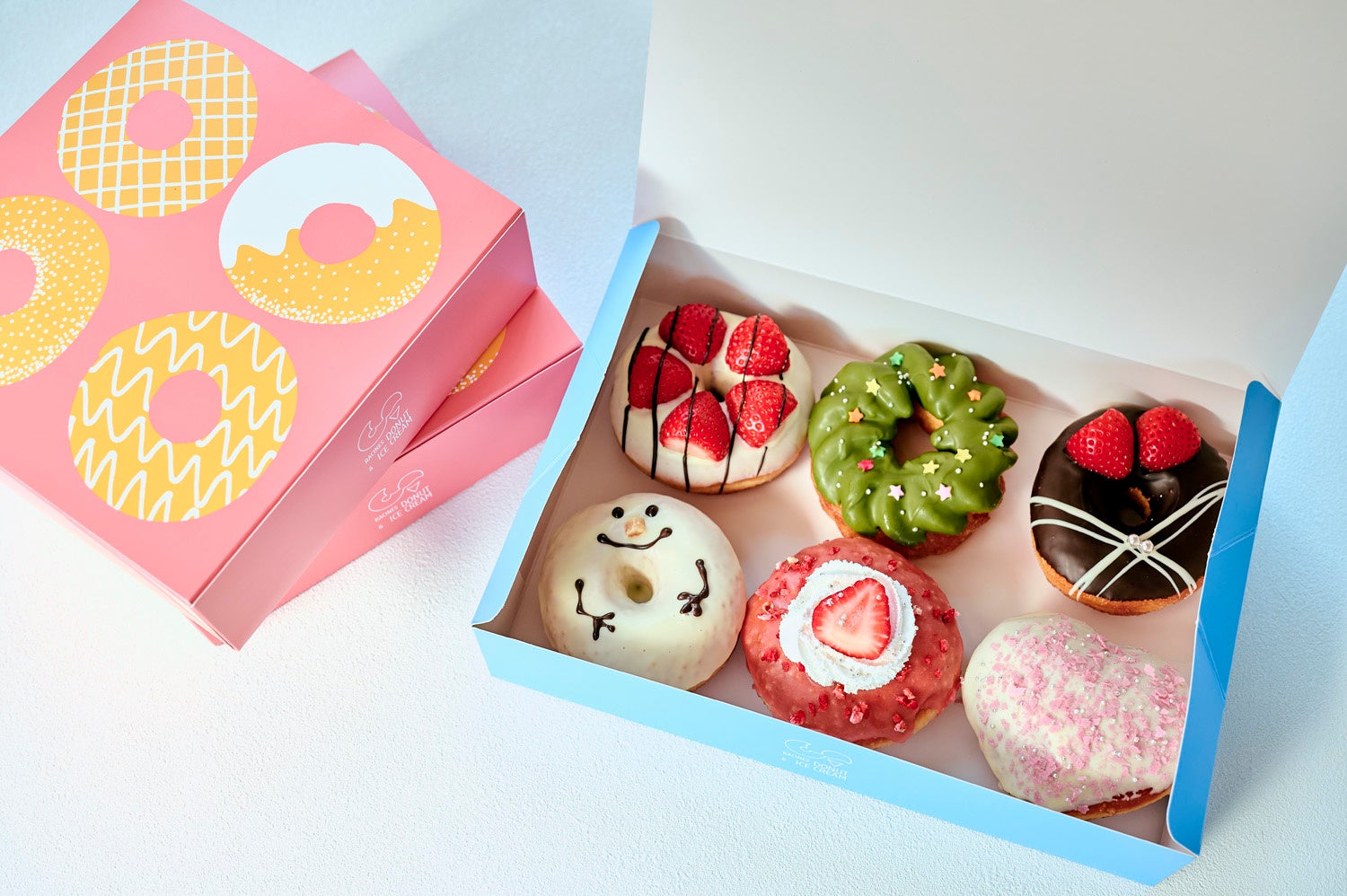 クリスマスの季節を彩る、贅沢な6種類の限定ドーナツが期間限定で登場します。「ホワイトクリスマス」をテーマに、ホワイトチョコレート、生クリーム、いちごをふんだんに使用し、華やかで特別なドーナツをご用意しました。スノーマンを描いた遊び心あふれるデザインや、見た目も可愛らしいリース形ドーナツなど、一つひとつ丁寧に仕上げた自信作ばかり。この季節だけの特別なドーナツで、心あたたまるクリスマスをお楽しみください。