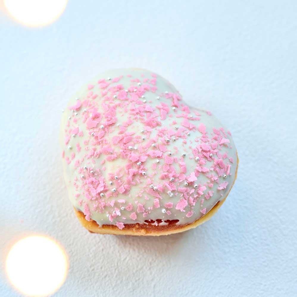 ふんわりとしたブリオッシュ生地をハート型に仕上げ、中にはたっぷりの生クリームを詰めて贅沢な味わいに。ホワイトチョコレートのグレーズでコーティングし、優しいピンク色のフィアンティーヌとアラザンで華やかにデコレーションしました。見た目も味わいもクリスマスにぴったりの一品です。