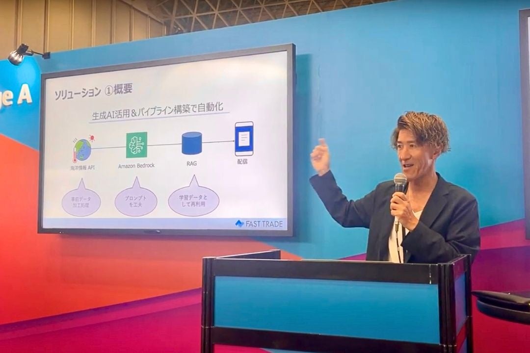 ファーストトレード株式会社(本社:福井県あわら市、代表:三上良平、以下 当社)の最高技術責任者(CTO)の福原玄(ふくはら・げん)が2024年6月20日(木)から21日(金)にわたり開催された、アマゾン ウェブ サービス (AWS)が主催する年次カンファレンス「AWS Summit JAPAN 2024」にて、「生成AI活用企業」としてミニセッションに登壇したことをお知らせいたします。