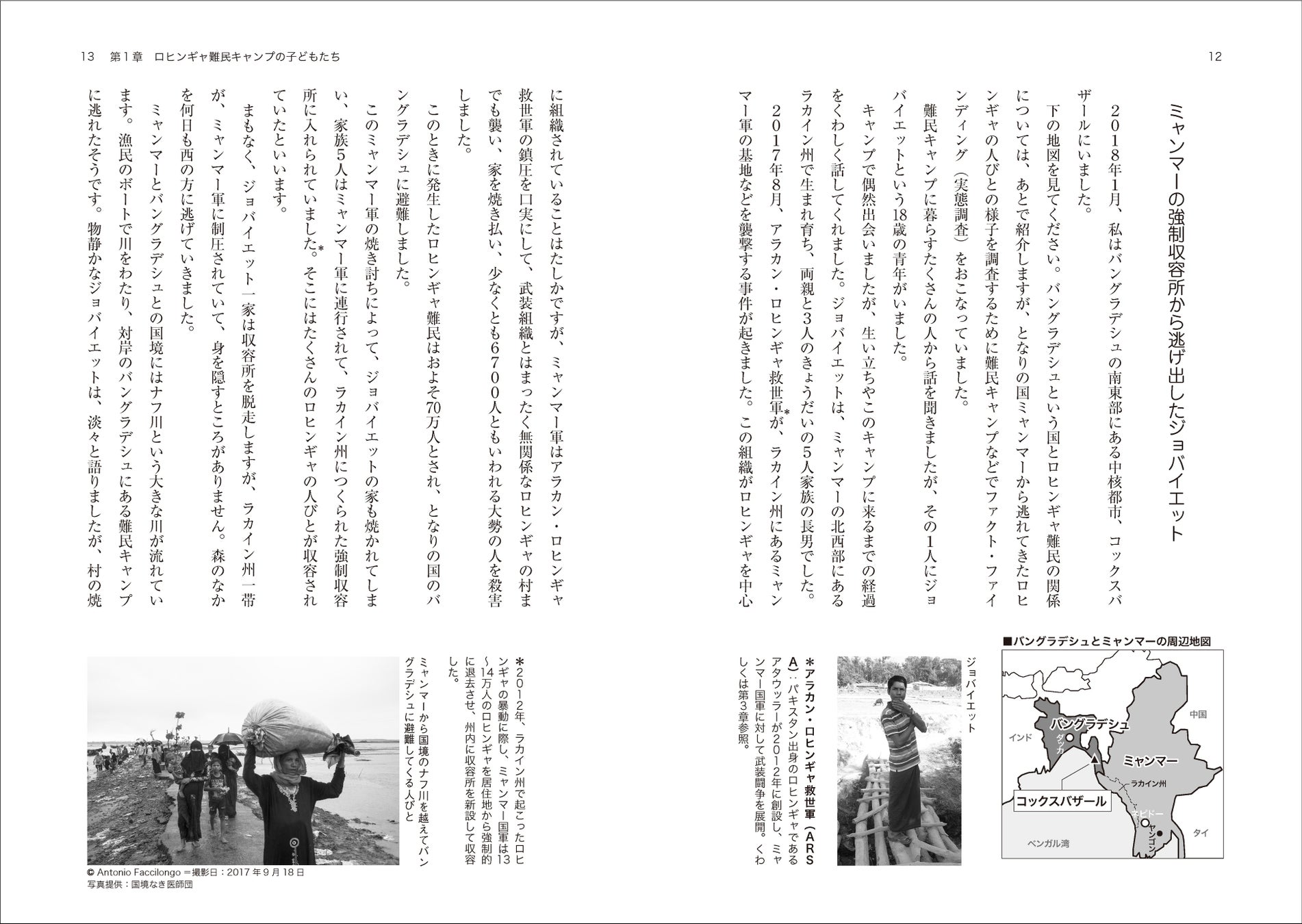 こうしたロヒンギャの人びとの現状を、バングラデシュでの難民キャンプの調査に基づき紹介しています。そしてこの問題の歴史的背景や、あまり報道されない難民キャンプの周辺に暮らす人びとへの影響など、ロヒンギャ問題を知るための入門書です。