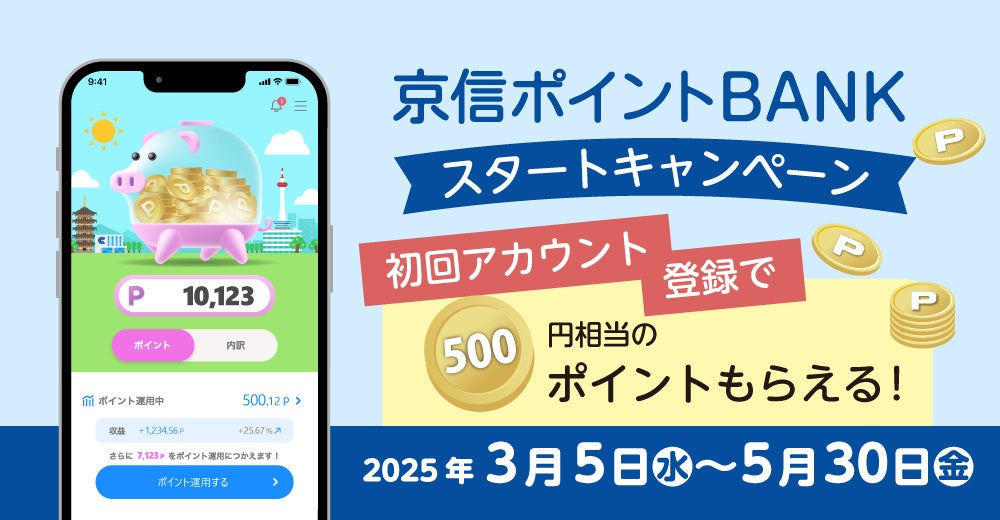 アプリのリリースを記念して、「京信ポイントBANK スタートキャンペーン」を開催します。