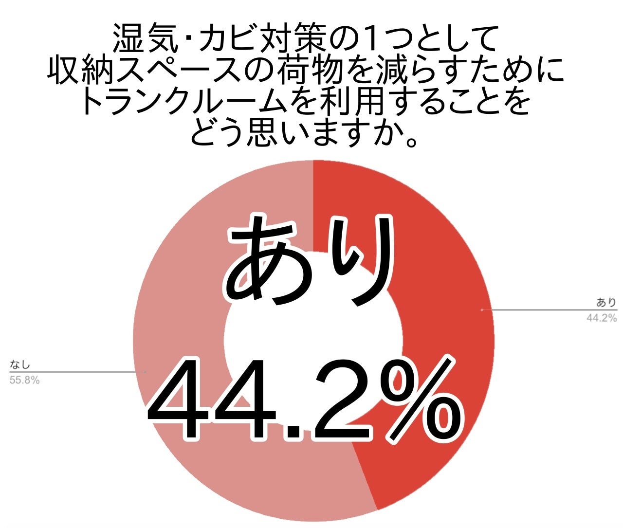 今回のアンケートでは湿気・カビ対策の一環として収納スペースの荷物を減らすためにトランクルームを利用することを良いと判断したのは44.2%でした。