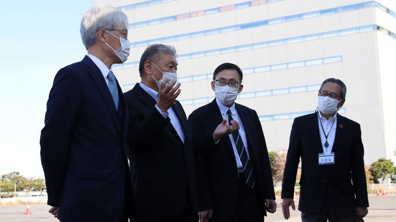 写真1枚目 ※左から、国土交通省 事務次官 藤井様、弊社代表佐藤、国土交通省 自動車局長 堀内様、弊社上級顧問 久志本