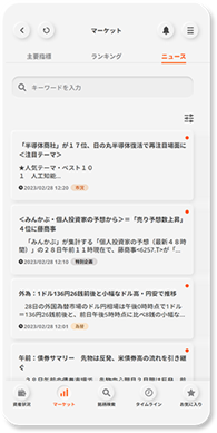 マーケット情報では、主要指数や、ランキングなどを確認することができます。