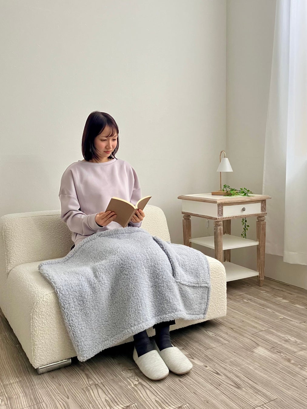 肩に羽織ってストールに、腰に巻いて防寒スカート風に、広げてひざ掛けやお昼寝時のおなかあたためにも。室内のリラックスタイムはもちろん、ワンマイルウェアやアウトドアシーンにも活躍など様々な形で使用可能です。