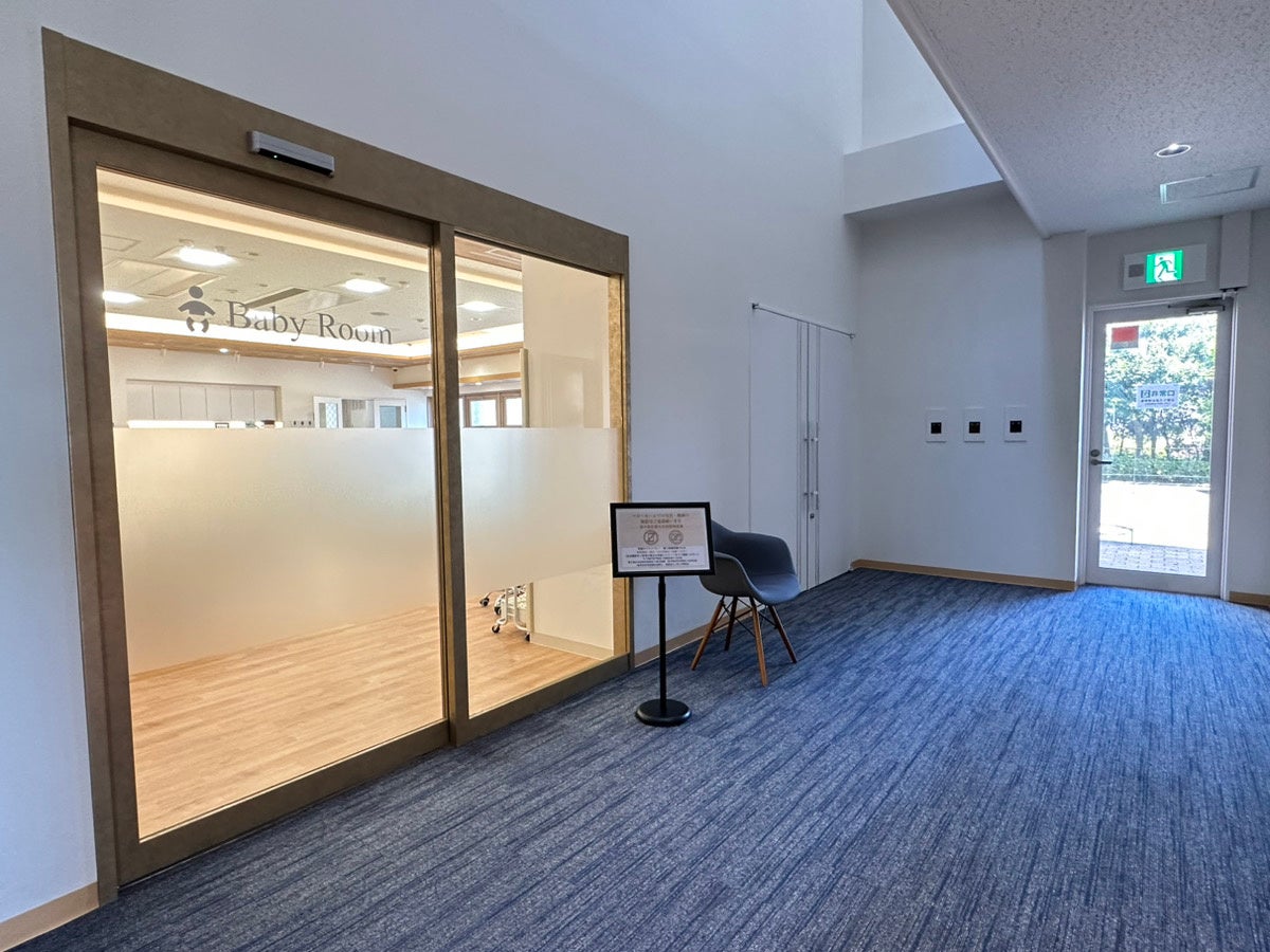 ベビールームは建物の1階にあります。改装前にはベビールーム内に避難ドアが3つあり、その3つ全てが、施設内を経由して外に避難する非常口となっていました。