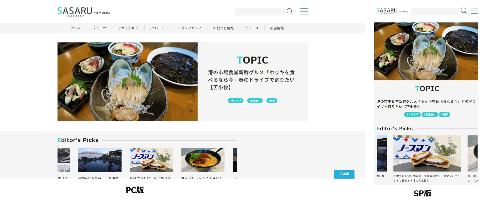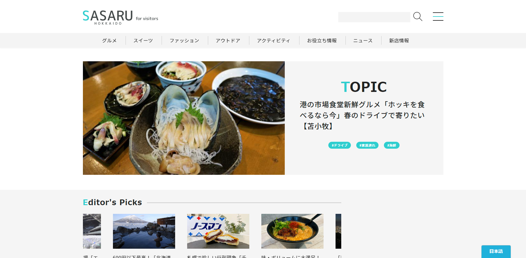 新型コロナウィルスが収束傾向となり、行動制限の緩和から、北海道のあちこちで外国人観光客の姿を目にする機会が増えてきました。そこで、北海道を訪れる外国人観光客に対して、自国のガイドブックには決して掲載されていない最新の北海道の地域情報を発信するWEBサイトとして「SASARU for visitors」をリリースしました。