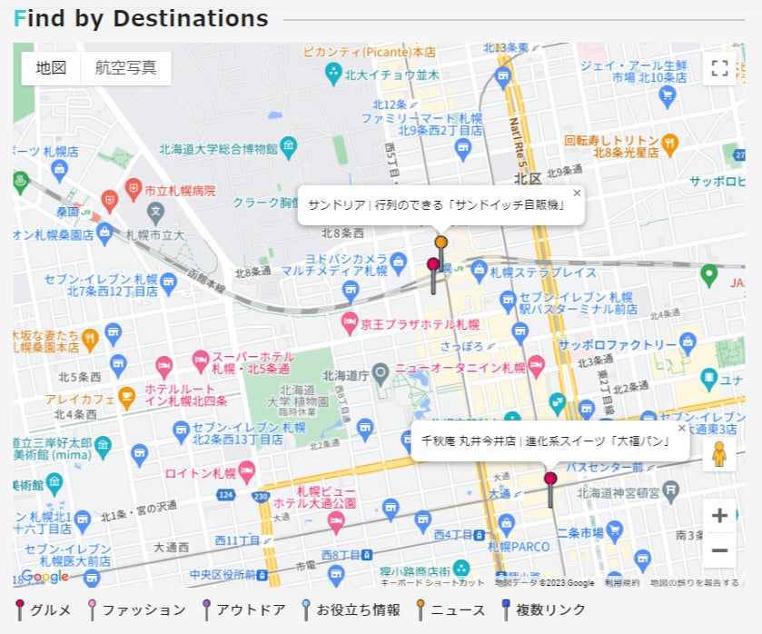 現在地から行けるスポットを視覚的・直観的に探すことできる機能を追加しました。“旅ナカ”(旅行中)で使用していただくために、紹介しているスポットをマッピングし、ビジュアル化しました。記事を見てから、訪問へのアクションを容易にしました。
