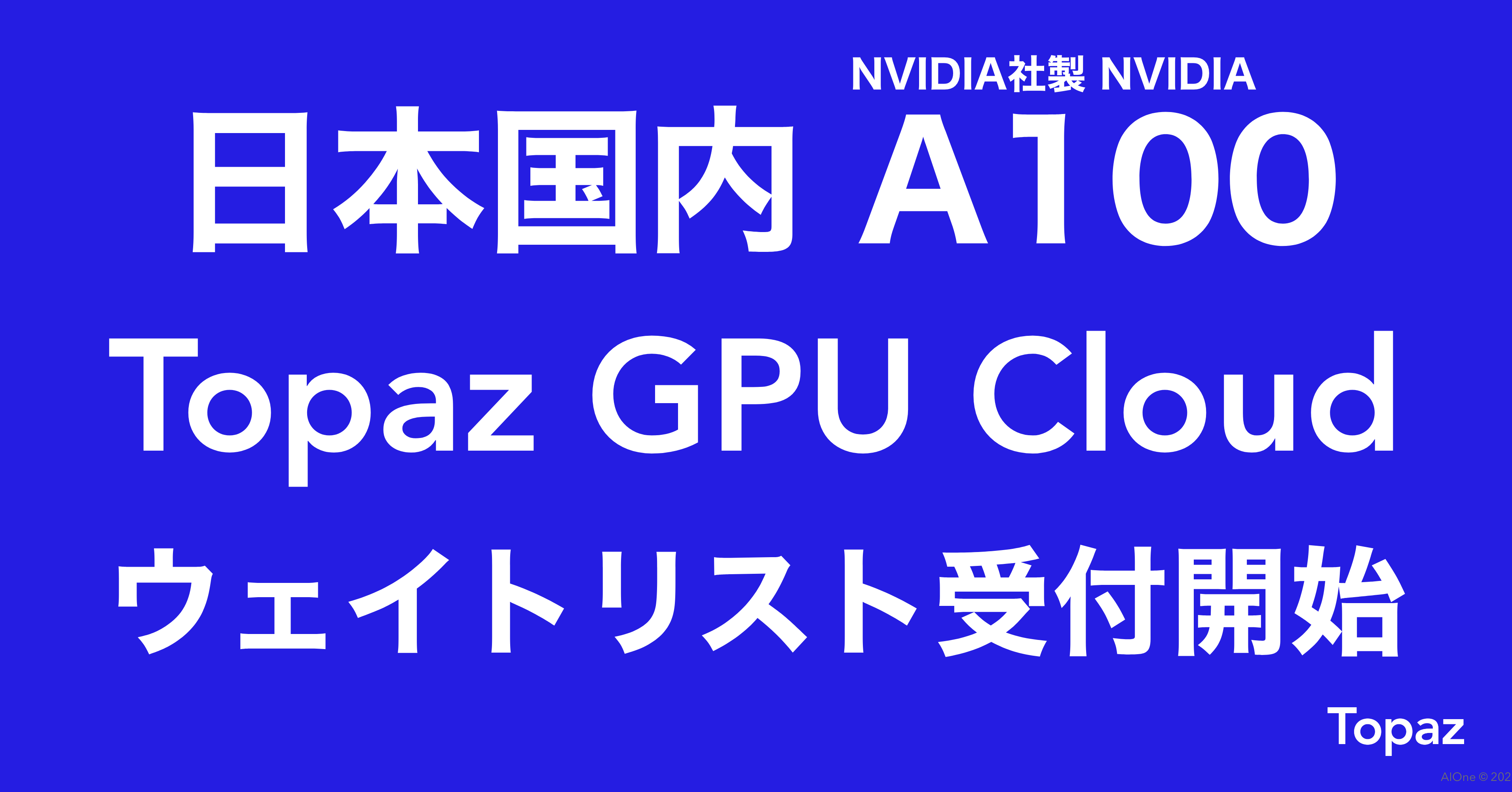 【低価格】Topaz、日本国内「NVIDIA A100 80GB」複数台搭載「Topaz GPU Cloud」ウェイトリスト受付開始【東京リージョン】