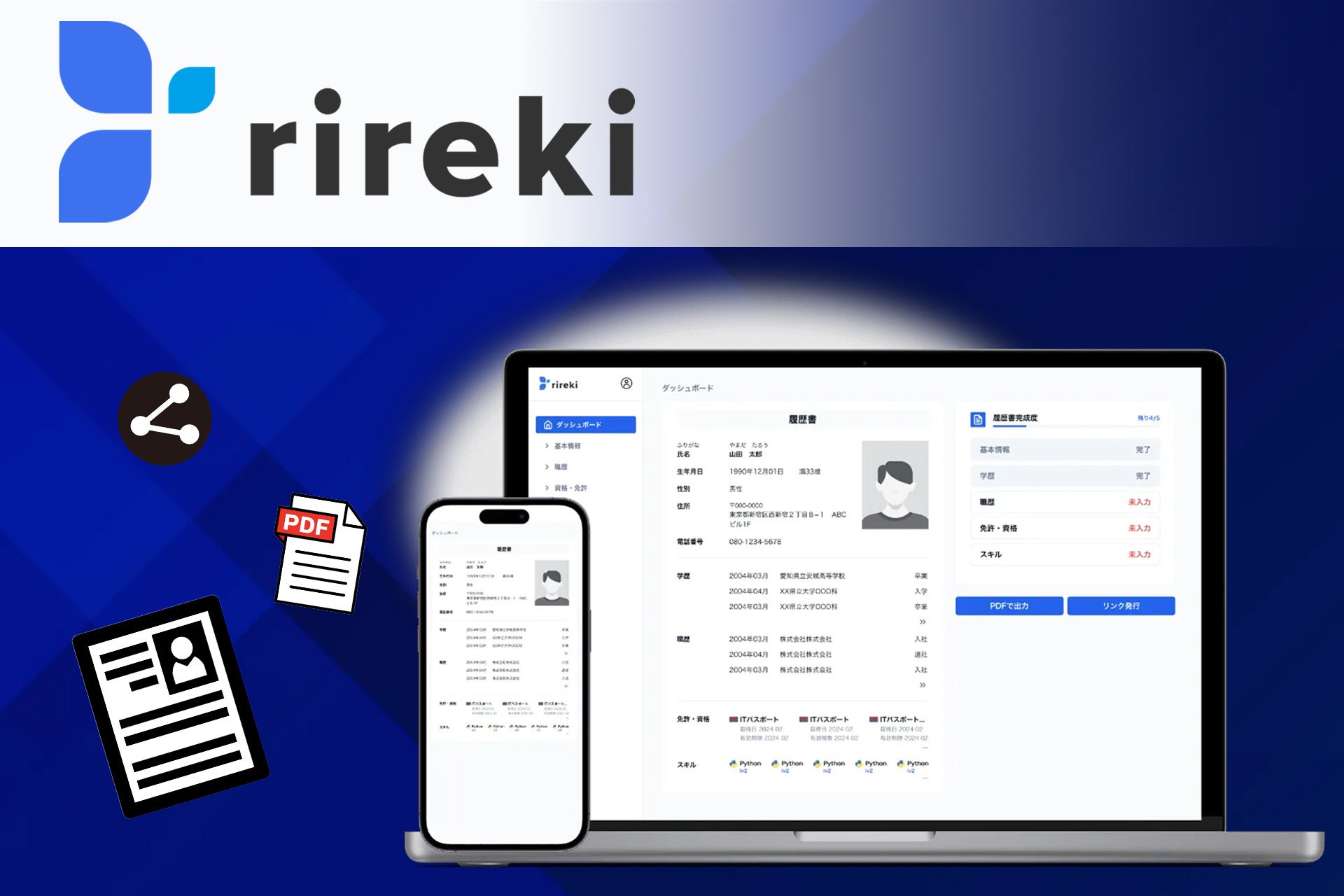 株式会社var(本社:鹿児島県鹿児島市、代表取締役:古里栄識)は、履歴書管理を効率化する新サービス「rireki(リレキ)」の提供を8月31日より開始する。「rireki」は、スキル管理から履歴書作成までをワンストップで行うことが可能な、完全無料のウェブアプリケーション。