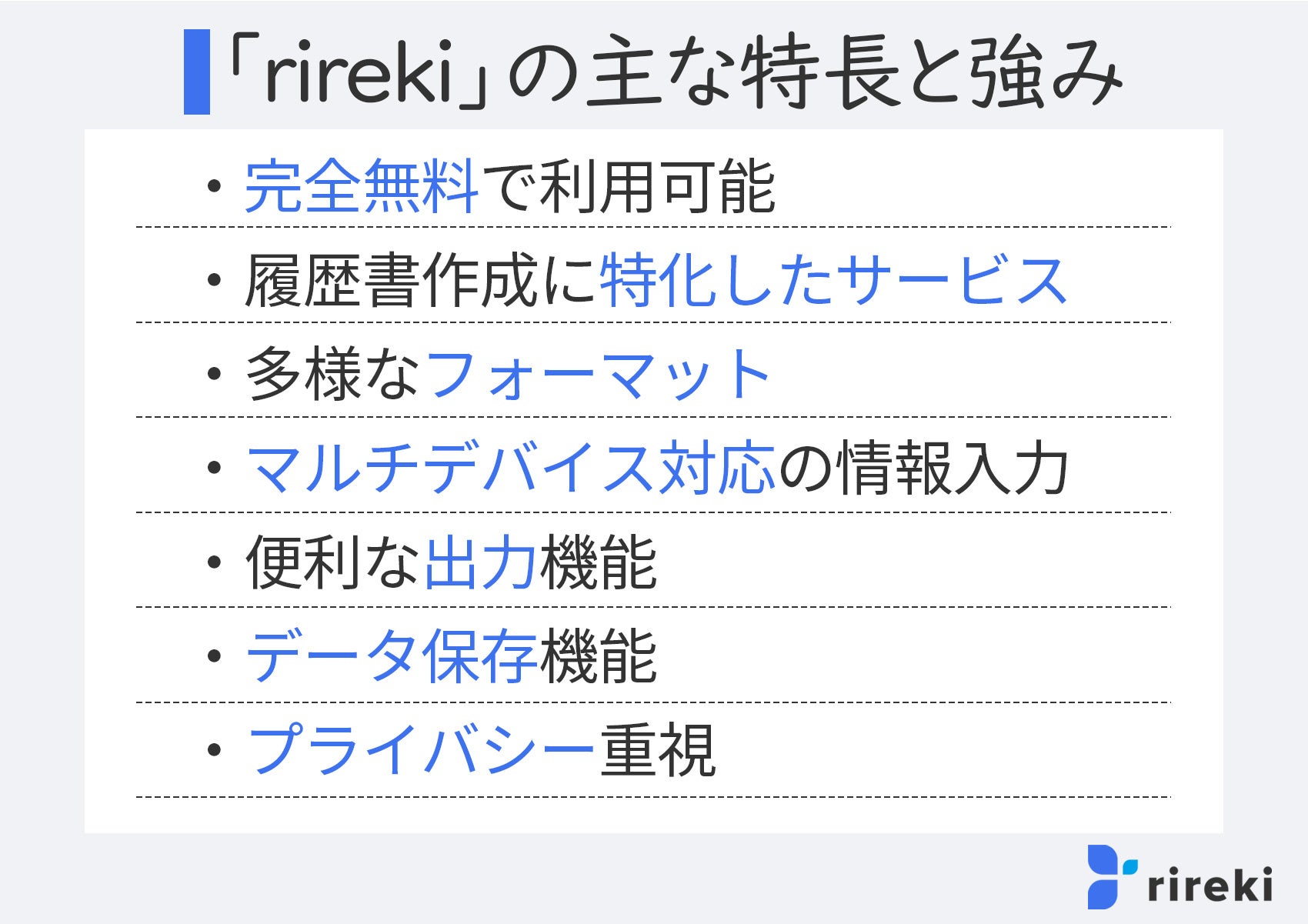 ■「rireki」の類似サービスと比較した特徴と強み