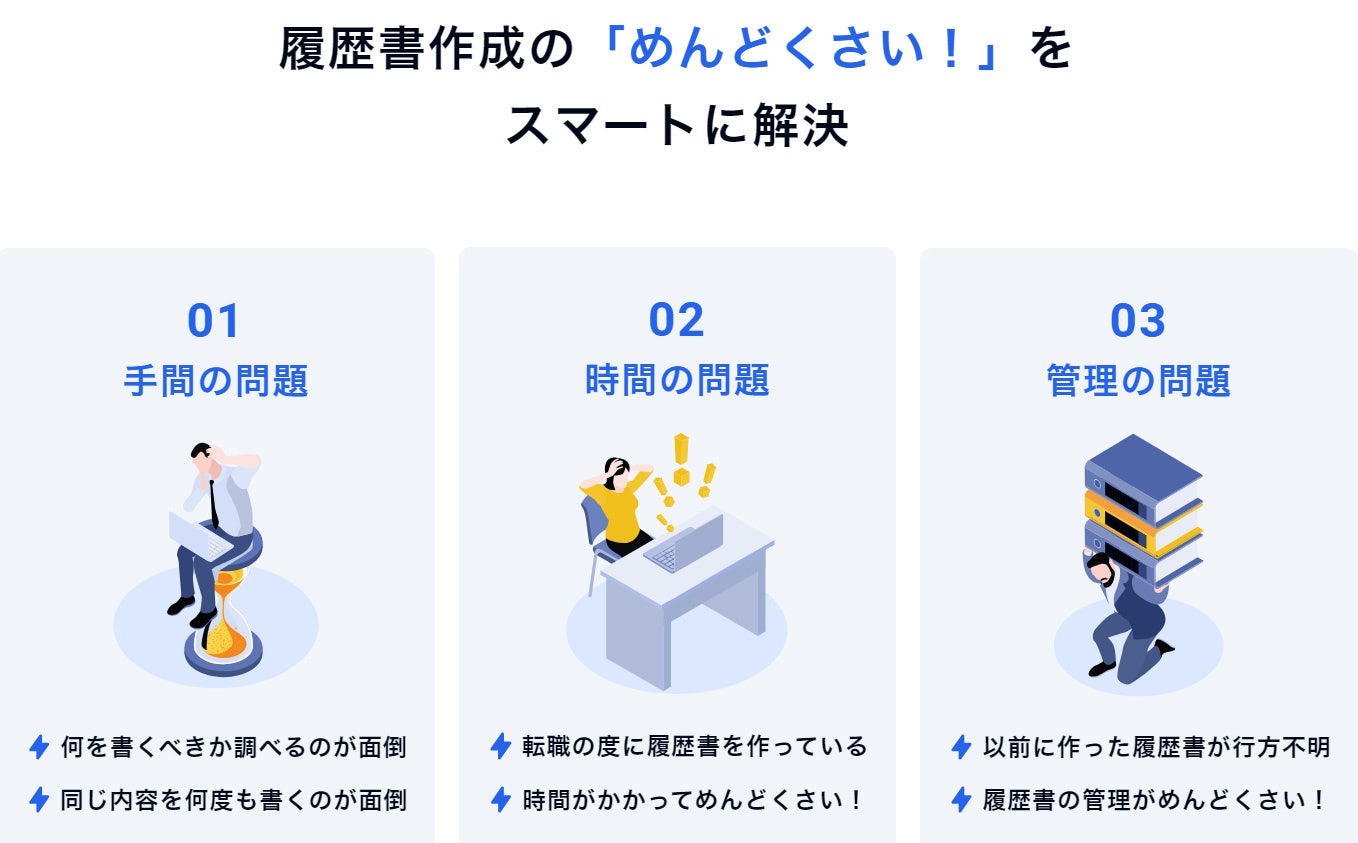 キャリアアップや転職の機会が増加している中で、履歴書や職務経歴書の作成・更新には多くの時間と労力がかかり、キャリア転換の障壁となっていました。