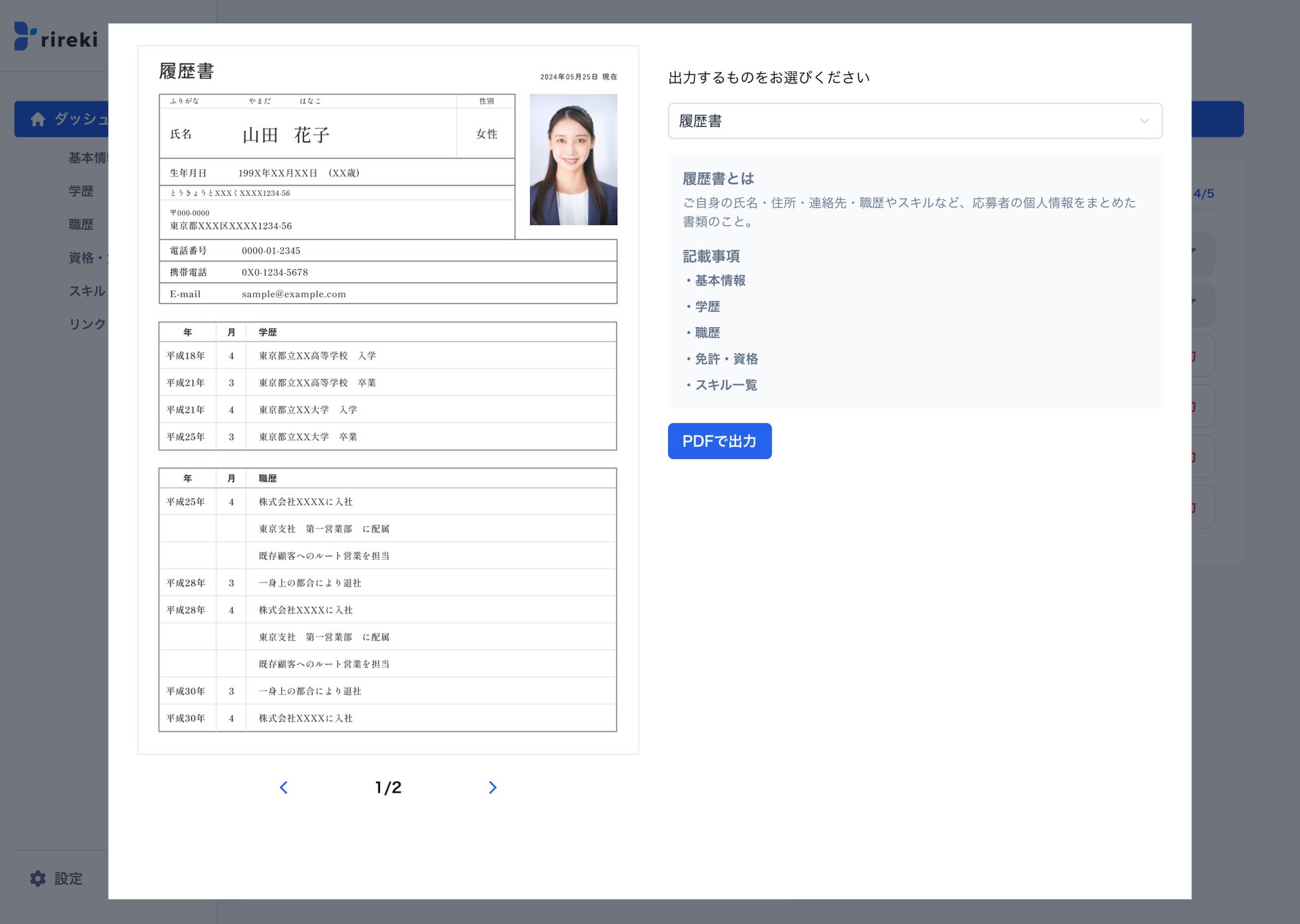 PDFエクスポートやコンビニ印刷にも対応しており、今後はAIによる自動入力や企業から採用の直接届くマッチング機能も計画中です。「rireki」で、よりスマートで効率的なキャリア管理を体験してください。