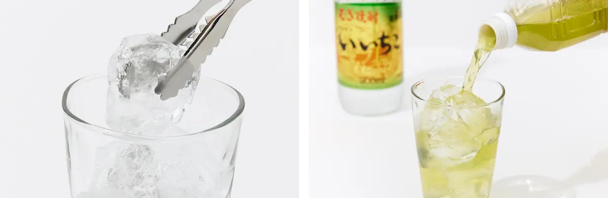 ②いいちこ1に対して水3を注ぎ、ステアして出来上がり