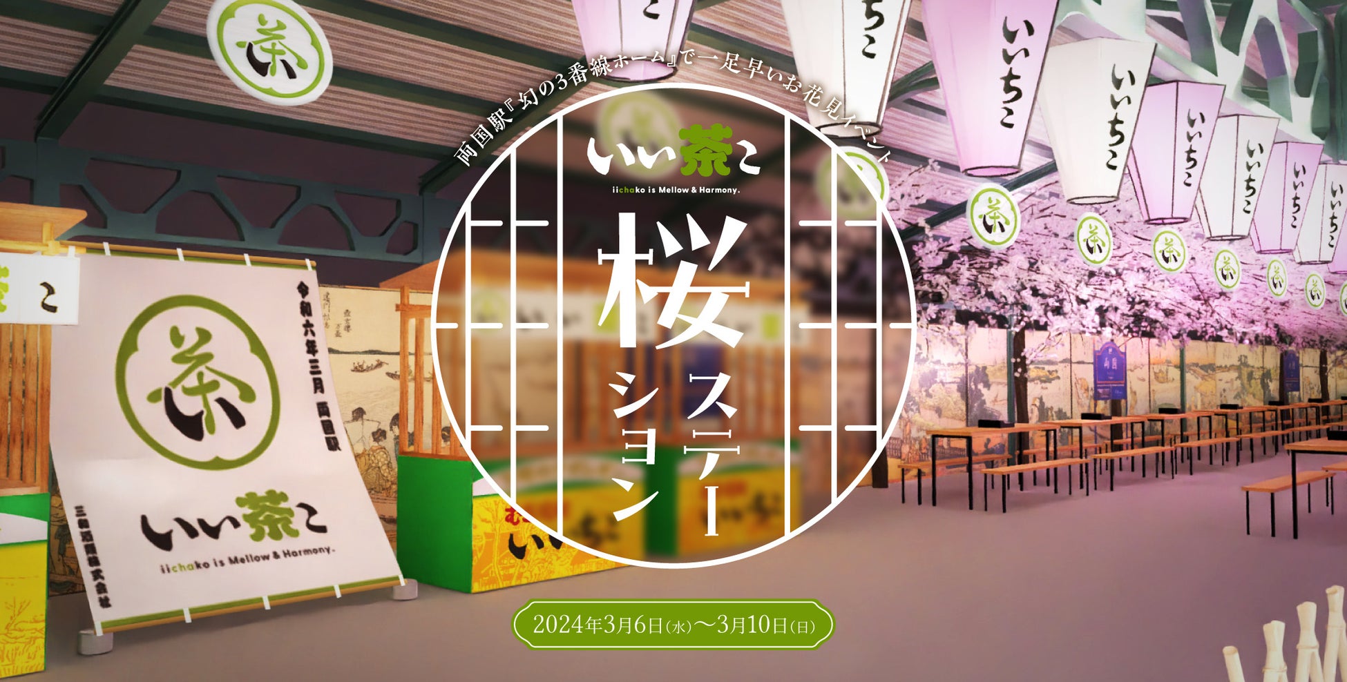 そしてこの度、シーンや場所を問わず美味しく楽しめる「いい茶こ」の魅力をより多くの方に知っていただこうと、普段はなかなか入ることができないJR両国駅の『幻の3番線ホーム』で、「いい茶こ」とともに“一足早いお花見”を贅沢に味わっていただけるイベント「いい茶こ 桜ステーション」を2024年3月6日(水)~3月10日(日)の期間限定で開催する運びとなりました。