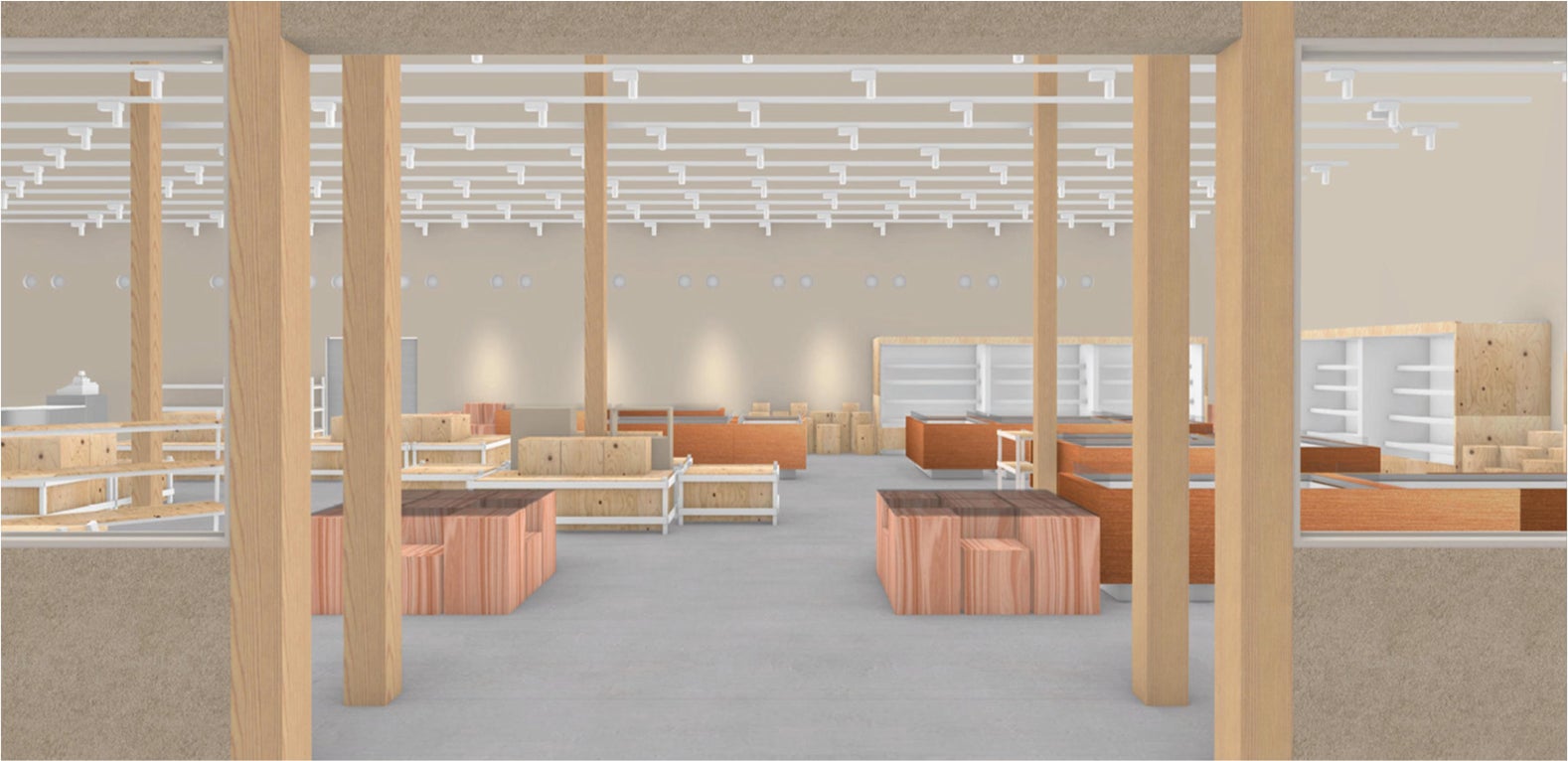 ショップのデザインは、自然素材を活かした温かみのある空間となっており、牧場内で伐採された木材や環境に配慮したサステナブルな素材も一部什器に使用されています。