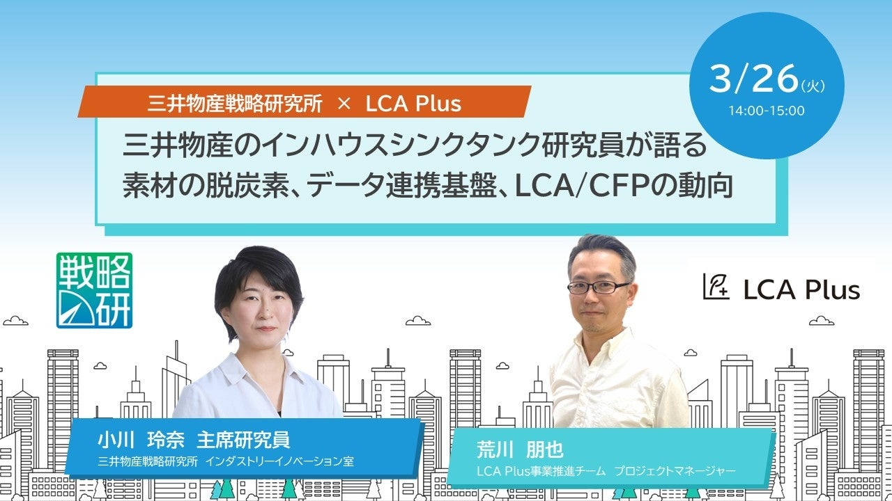 【無料ウェビナー開催】三井物産戦略研究所 × LCA Plus~三井物産のインハウスシンクタンク研究員が語る素材の脱炭素、データ連携基盤、LCA/CFPの動向~