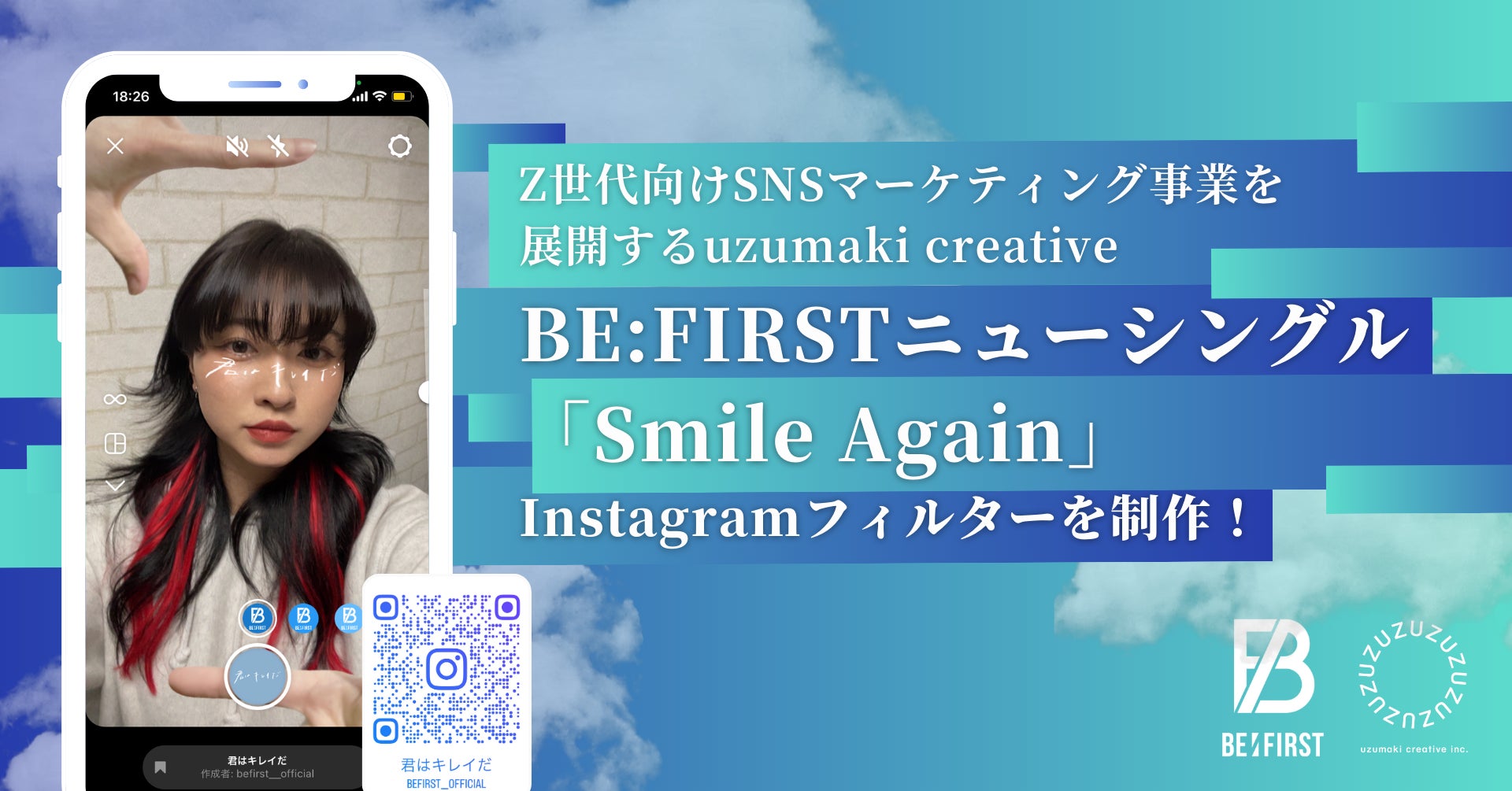 Z世代向けSNSマーケティング事業を展開するuzumaki creative、 BE:FIRSTの新曲「Smile Again」のInstagramエフェクトをリリース
