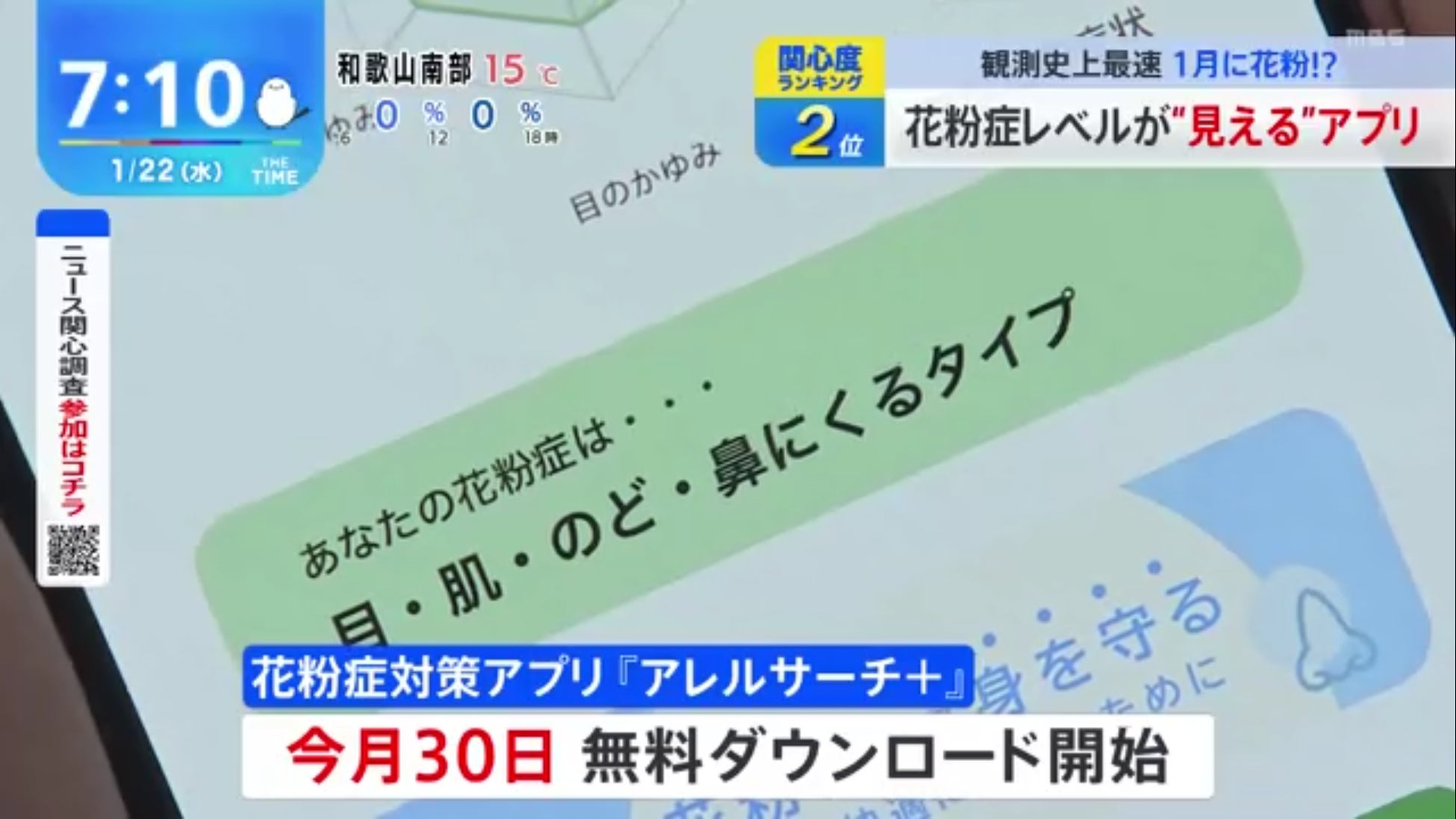 花粉症対策の新しいカタチを提案! スマホアプリ『アレルサーチ+』無料ダウンロード開始