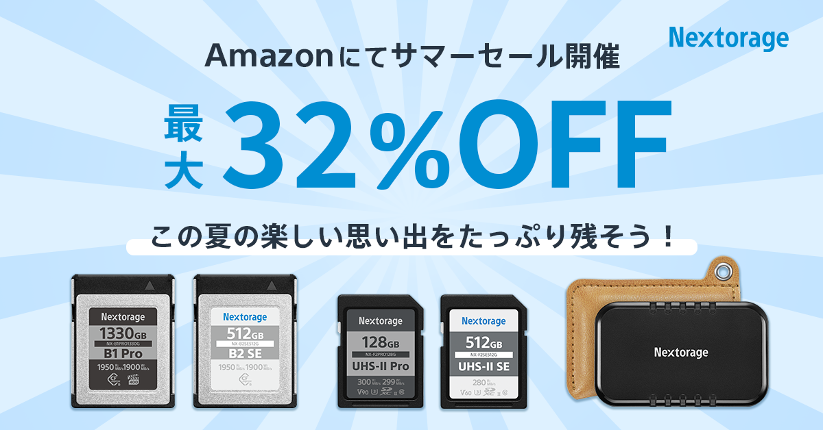 撮影枚数、撮影時間が増えても快適な、データ転送速度が速いCFexpress Type BとSDXC UHS-IIをセール対象とし、静止画撮影から、高速連写や動画撮影まで様々な撮影に対応するカードをお求めやすい価格でご提供します。